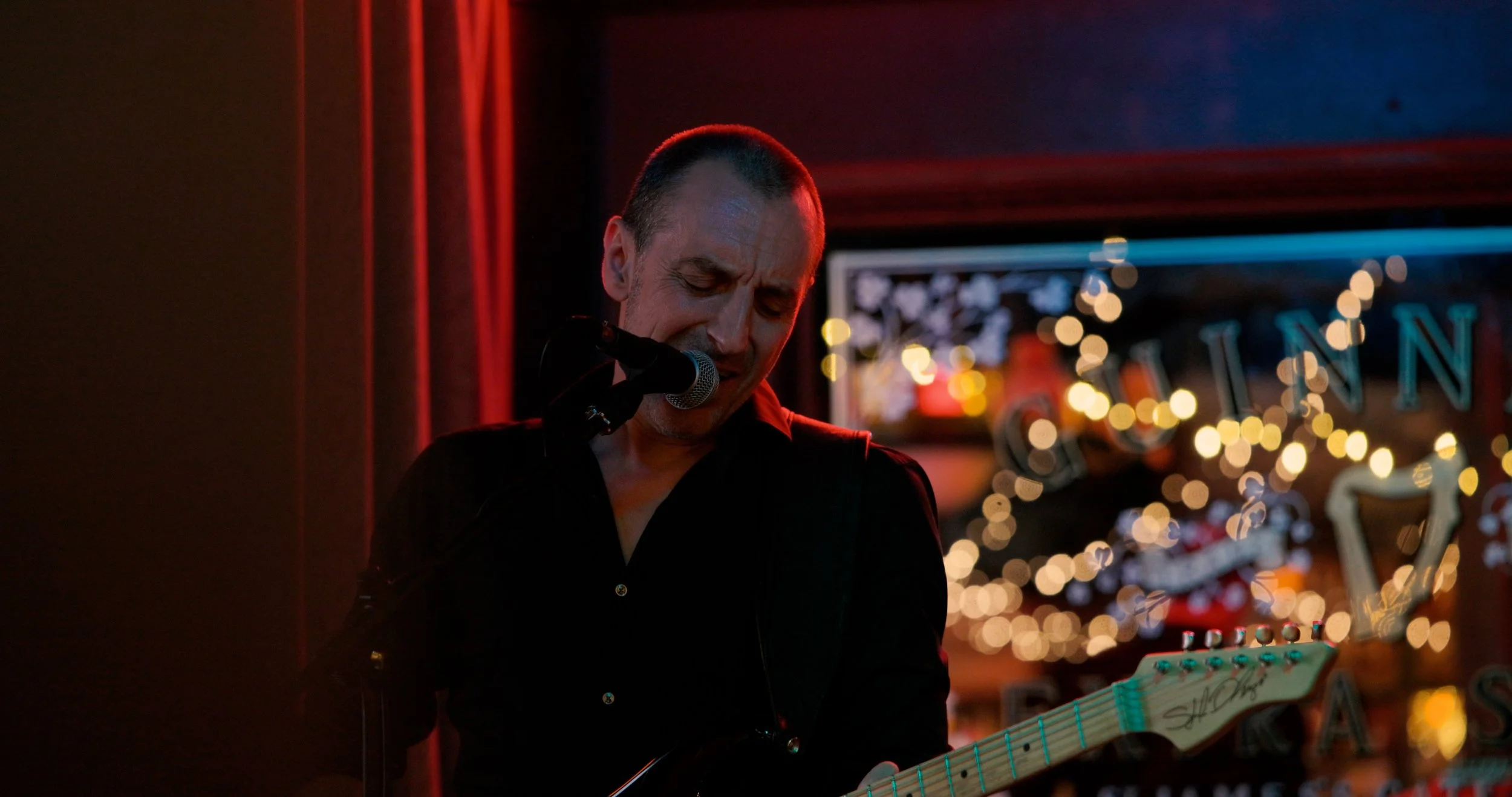 50s Strat style electric guitar into a vintage style tube amp, double bass, drums.